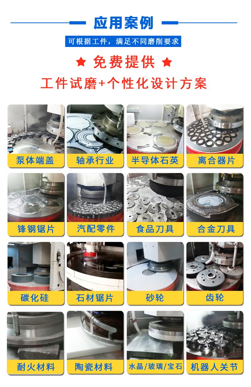 適(shi)用(yong):適(shi)用(yong)于冶金,鋸片,汽車,拖拉機,工(gong)具(ju),軸(zhou)承(cheng),玻璃,石材等行業對大(da)型零部件的磨削加工(gong)。
